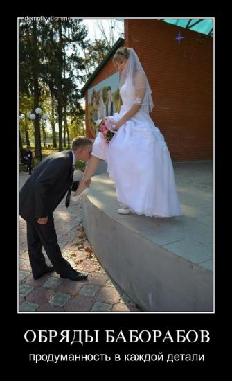Я уже писал о баборабских свадьбах. Там через систему ритуалов, обычаев и действ баборабу показывается его статус в матриархальной семье – статус клоуна, придурка и опущенного. И вот читаю я форум Маскулиста и натыкаюсь на такой пост: