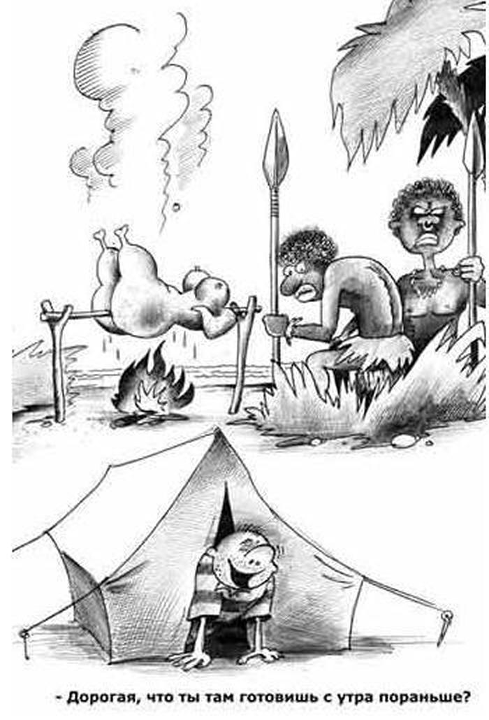 — О еде думай, а не о бабах!! Давай, полезай на пальму, чего смотришь!…