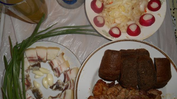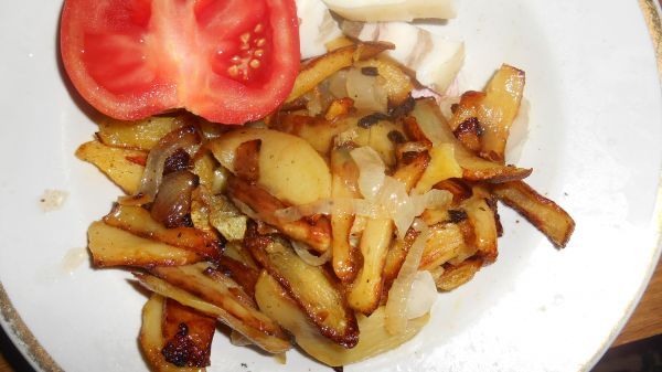 А я в основном питаюсь картошкой с квашеной капустой (это для витамина С), плюс немного хлеба и несколько конфет с зелёным чаем.