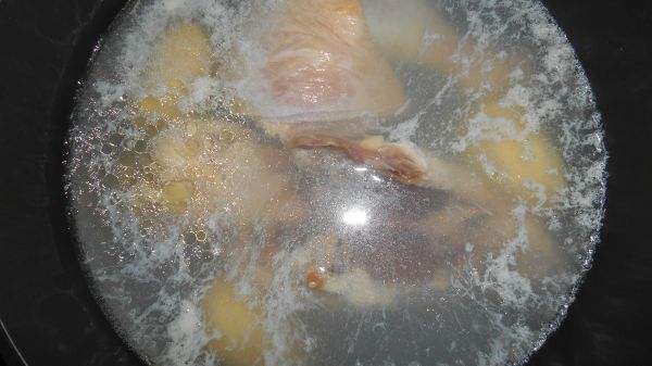 Маленький секретик: с мясом-курой я закидываю вариться несколько целых картофелин